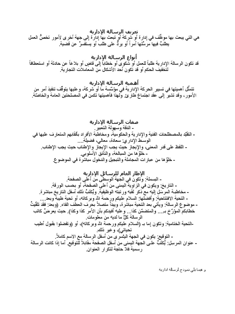 بحث حول الرسالة الادارية pdf.